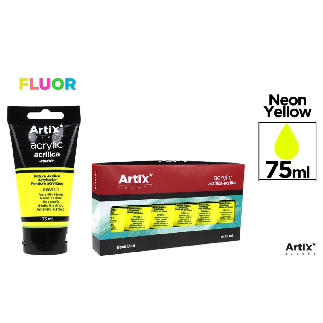 CULORI ACRILICE IPB 75ML GALBEN NEON PP632-1 - Vopsea acrilică satinată de înaltă densitate cu pigmenți strălucitori, conținută într-o emulsie de polimer acrilic, perfectă pentru obținerea unor nuanțe reale și consistente în pictură. Uscare rapidă. Ideală pentru artiștii profesioniști, începătorii în pictura cu acrilice, iubitorii de pictură și copii. Consistența sa groasă menține marcajele cu pensula sau spatula în condiții perfecte și conferă o textură lucioasă lucrărilor.