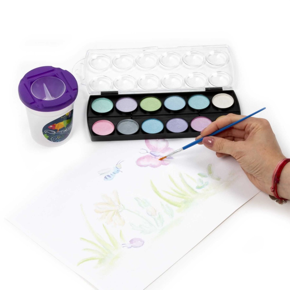 Etichete: ```, Proiecte artistice, Culori strălucitoare, ARTA PENTRU COPII, arta creativa, Creativitate Artistica, Pensulă inclusă, acuarele 12 culori metalice, set pictura cu acuarele, mixare culori, efect metalic, arta pentru incepatori, culoare argintie, culori metalice, set acuarele profesionale