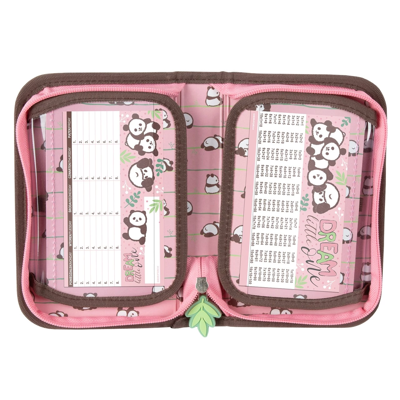 🐼 Penarul școlar CUTE PANDA este o alegere perfectă pentru copiii cărora le plac animalele drăguțe! Are un compartiment și două clapete practice, cu plan de lecție și tablă de înmulțire. Măiestria de înaltă calitate și interiorul spațios îl fac nu doar un plus frumos, ci și funcțional pentru rechizitele lor școlare.
