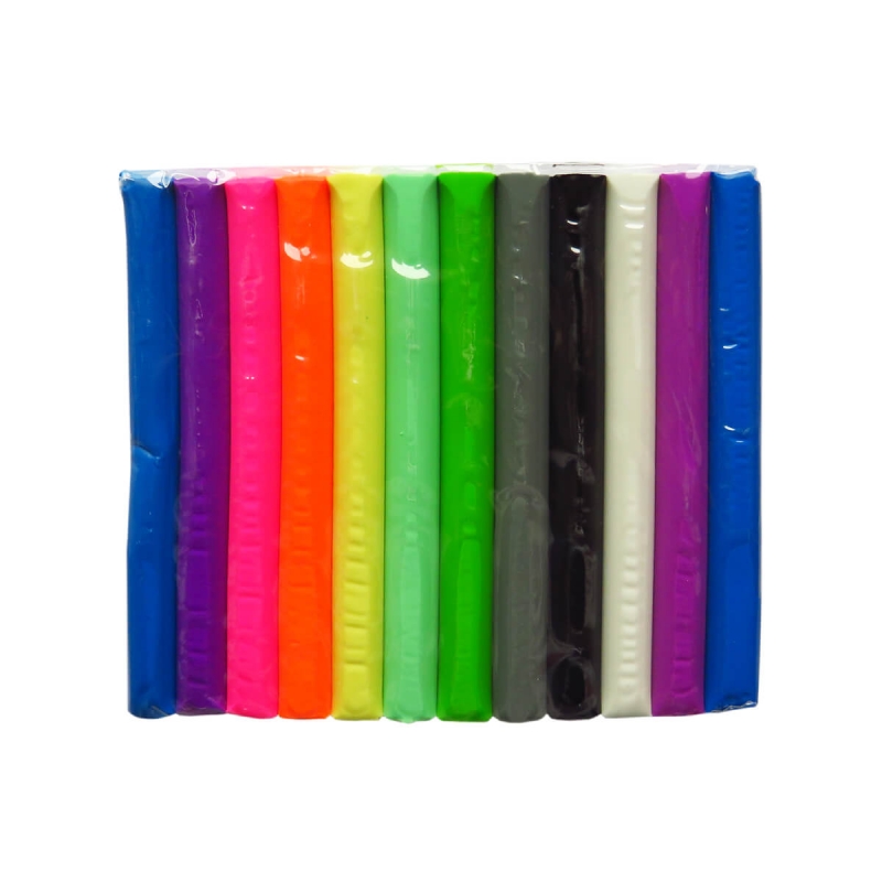 Textura moale și flexibilă permite formarea ușoară a diferitelor forme. Nu se usucă, așa că îl poți folosi mult timp. Setul include 24 de culori, inclusiv până la 12 culori neon sub formă de cilindri mici, comozi.
