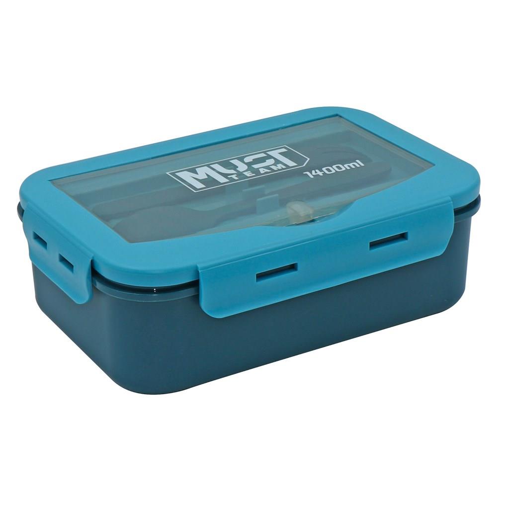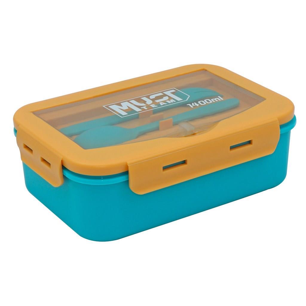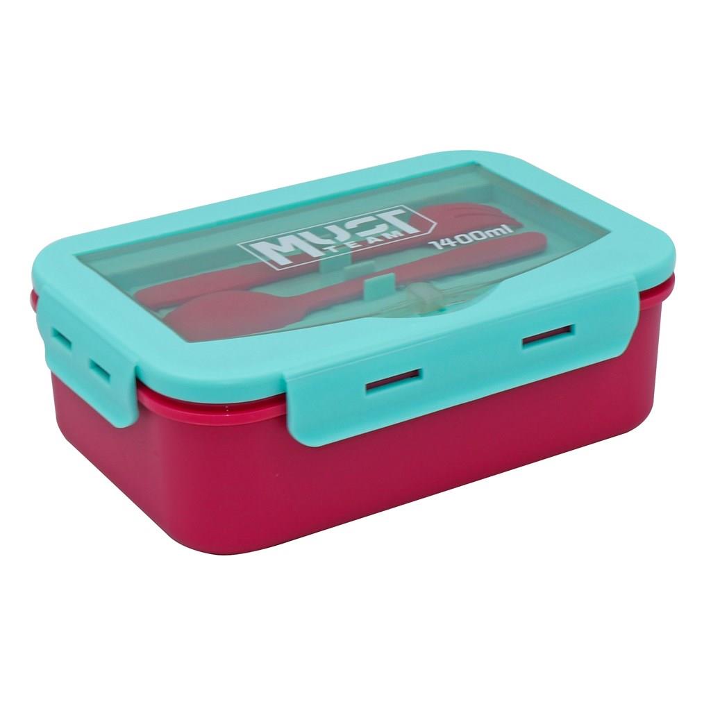 Descoperă recipientul pentru alimente din plastic PP Must 1400ml, echipat cu furculiță și lingură în 3 culori, ideal pentru păstrarea alimentelor proaspete și gustoase în timpul zilei la birou, serviciu, ieșiri sau călătorii.