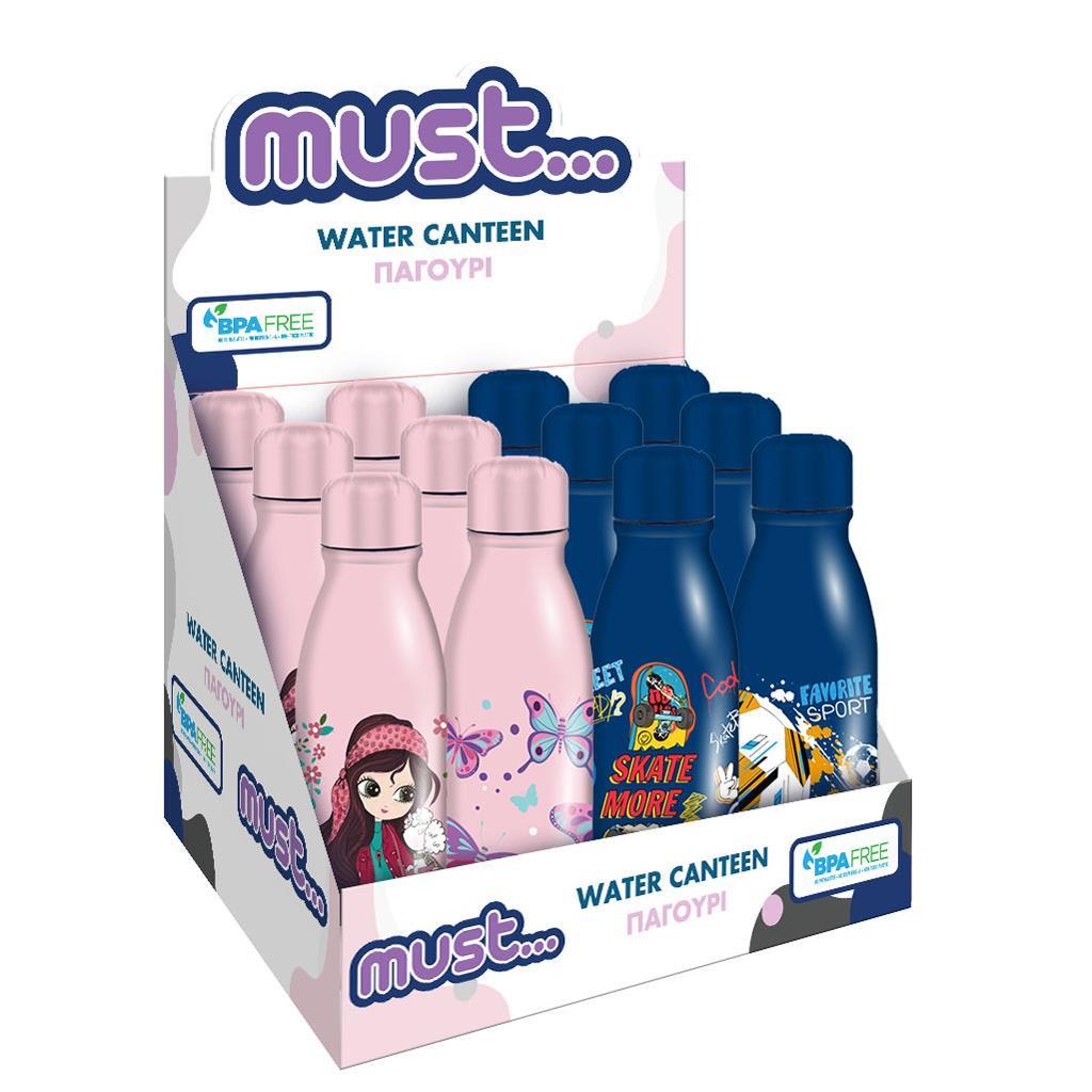 Sticla din Aluminiu cu Capac 540 ml este disponibil in 4 modele (Fotbal, Luna, Fluture, Skate) si este un accesoriu ideal pentru scoala, plimbare si locul de joaca.