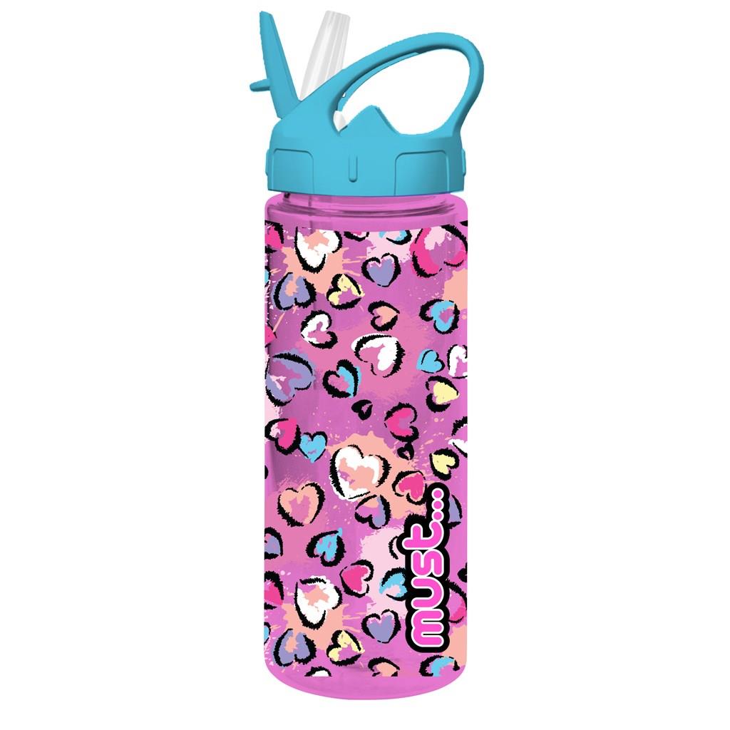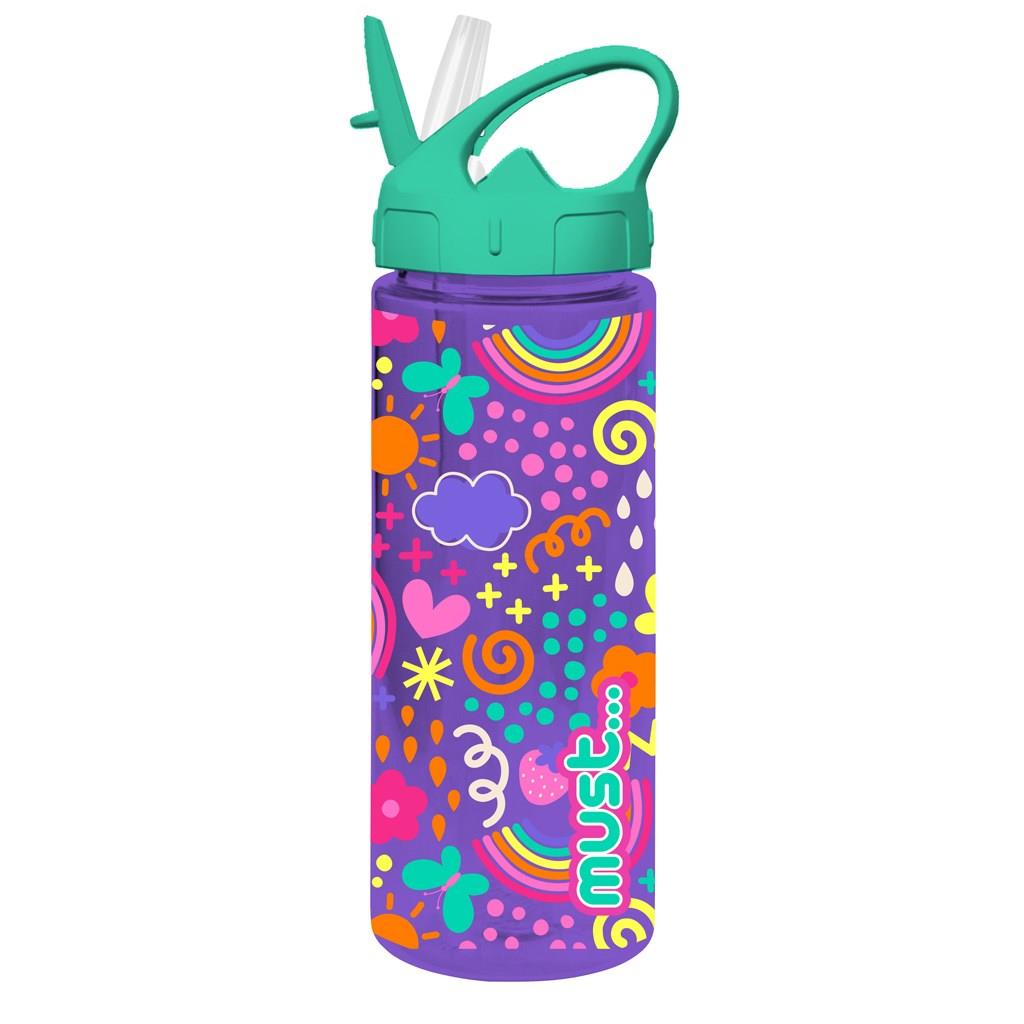 Sticla pentru apă Must de 500 ml cu pai este disponibilă în 4 modele artistice, fiind un accesoriu ideal pentru școală, sală de sport și plimbările zilnice. Această sticlă este perfectă pentru cei care apreciază designul și funcționalitatea.