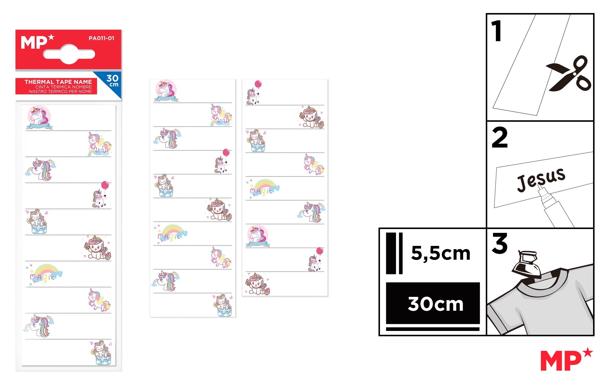 Etichetele termoadezive pentru haine sunt foarte rezistente, fiind potrivite pentru marcarea durabilă a hainelor pentru grădiniță, școală, tabără, spa, pentru activități sportive și de after school. Este suficient să le călcați pentru 15 secunde și vă veți recunoaște hainele pentru totdeauna.