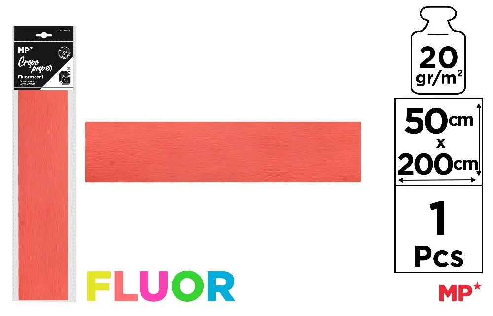 Hârtie Creponată IPB 50x200cm 20g Coral fluorescent (PN224-01) - Culoare Strălucitoare pentru Proiectele Tale