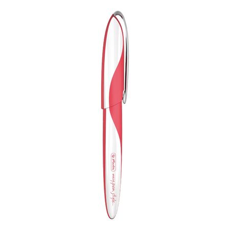 Herlitz, My.Pen Style, plastic, metal, grip ergonomic pentru stangaci si dreptaci, penita solida otel inoxidabil, clip calitate superioara, 1 patron cerneala inclus, model Glowing Red, 1 bucata/cutie