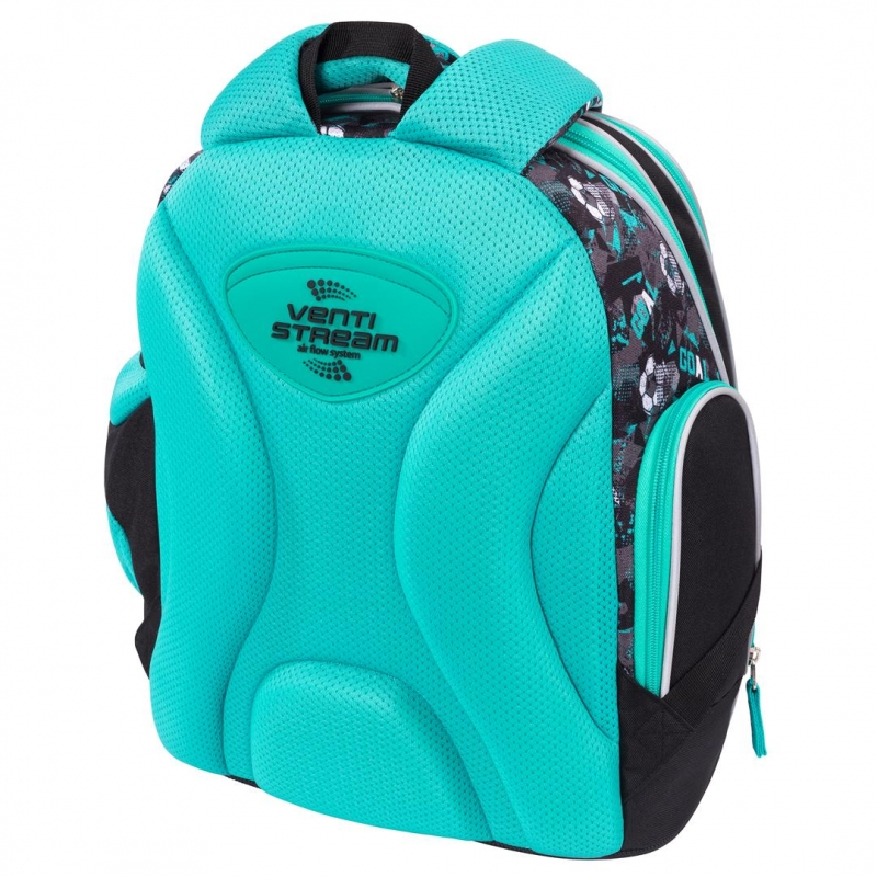 🌟 Spatele rigidizat, conturat anatomic, cu sistem Venti Stream asigură circulația aerului și confortul copilului.
