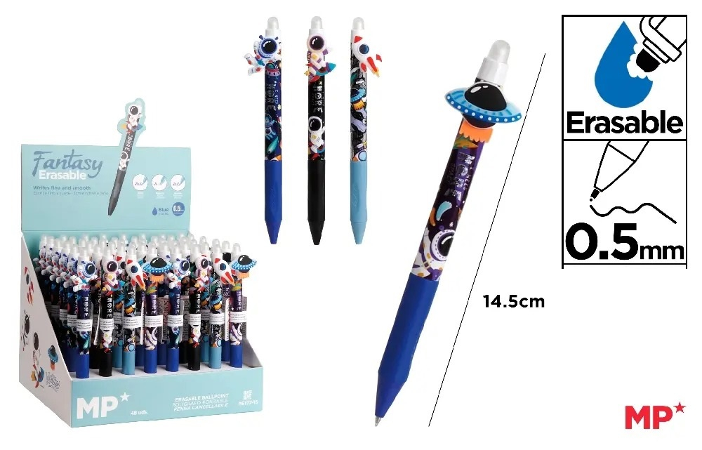 🚀 Pix cu radieră de înaltă calitate (0.5mm) cu design tematic spațial, disponibil în 4 modele diferite (aleatoriu) pentru o surpriză plăcută la fiecare achiziție.