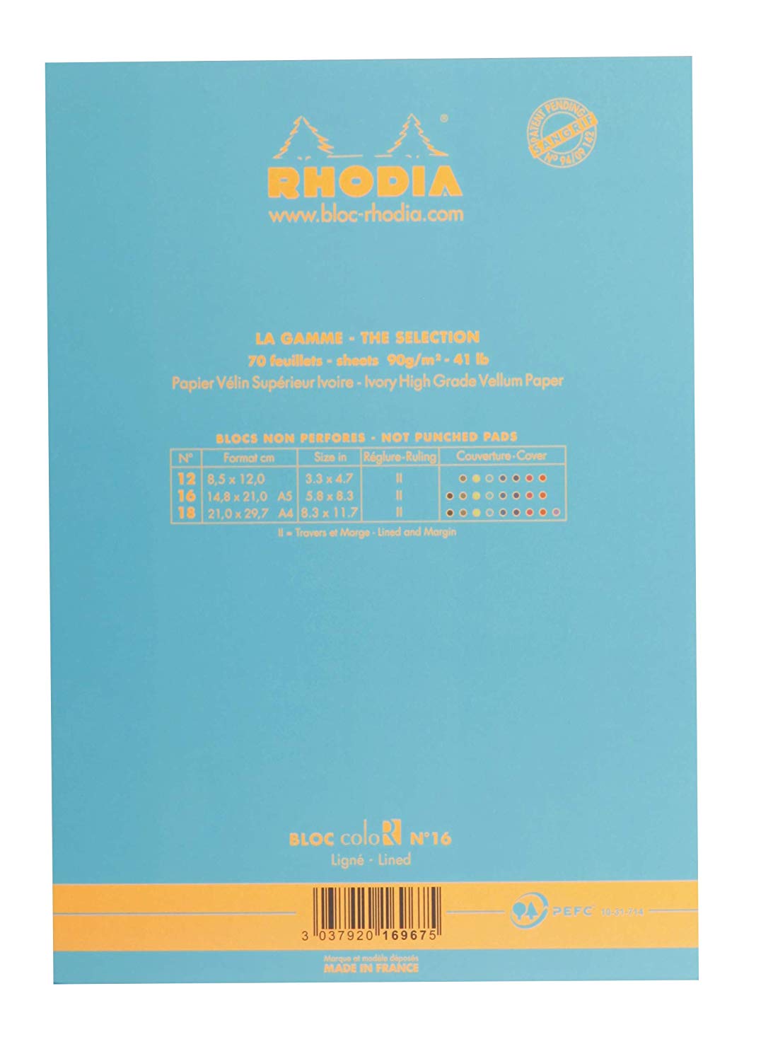 BLOC NOTES 14.8*21CM 70F 90GR TURCOAZ RHODIA COLOR PAD 16967C
