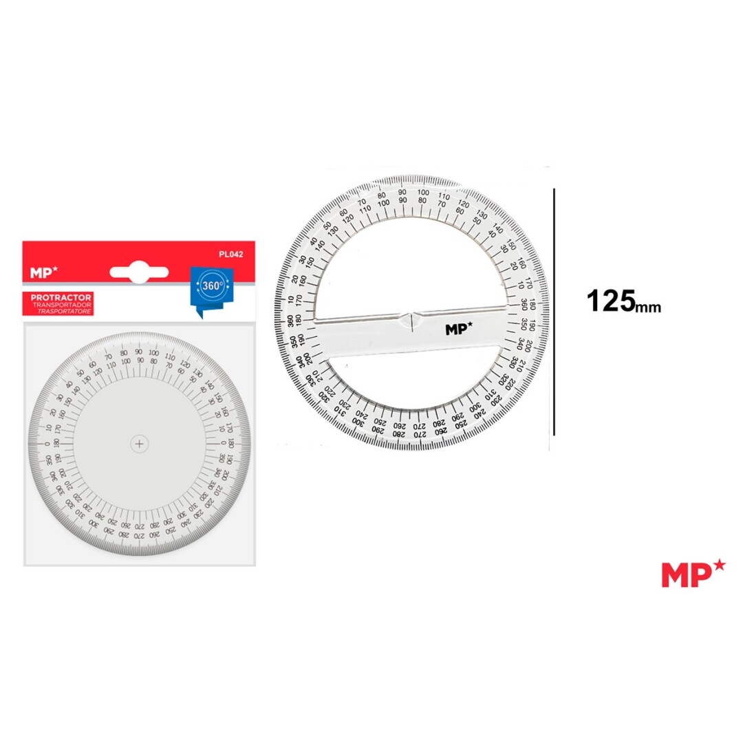 Raportor de 360 °. Diametrul de 12,5 cm. Design transparent cu gradații imprimate