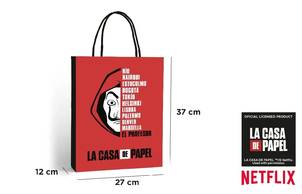 SACOSA CADOU IPB 37*12*27CM - LA CASA DE PAPEL (NFCP018-01) - Sacosa Tematica de Calitate Superioară