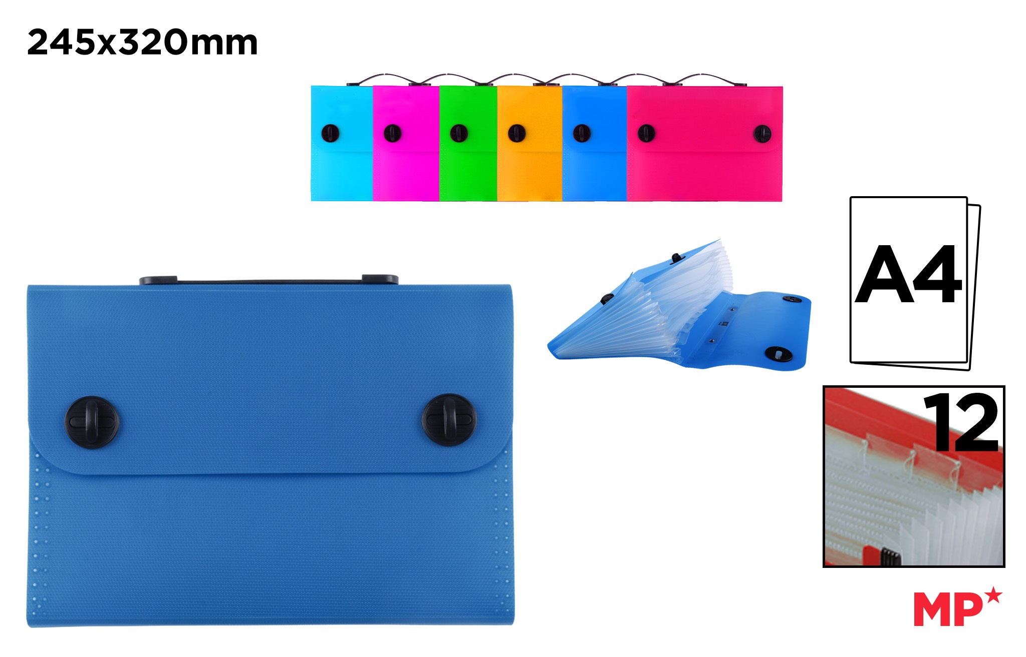 SERVIETA IPB A4 PP 12 COMPARTIMENTE DIVERSE CULORI PC450 - Servietă extensibilă din polipropilenă cu mâner