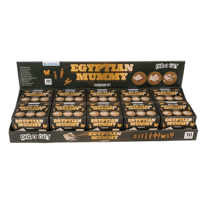 Mini kit-ul are dimensiunile aproximative de 8 x 9,5 cm și include un ciocan și o perie, tot ce ai nevoie pentru a începe aventura ta arheologică. Cu 10 mumii diferite de adunat, fiecare ascunzându-se sub suprafața sa, vei fi întotdeauna intrigat și curios să descoperi ce se află în interiorul fiecăreia.
