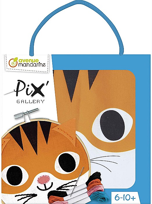 Kitul Pix'Gallery iti permite sa realizezi o broderie cu cusatura in cruce, pentru copii intre 6 si 10 ani.