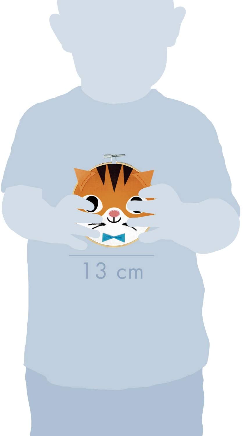Conține: o țesătură imprimată de 18x18cm, un cerc de lemn cu diametrul de 13cm, bucăți de pâslă pre-perforate pentru a coase, 4 fire, un ac, un degetar și instrucțiuni.