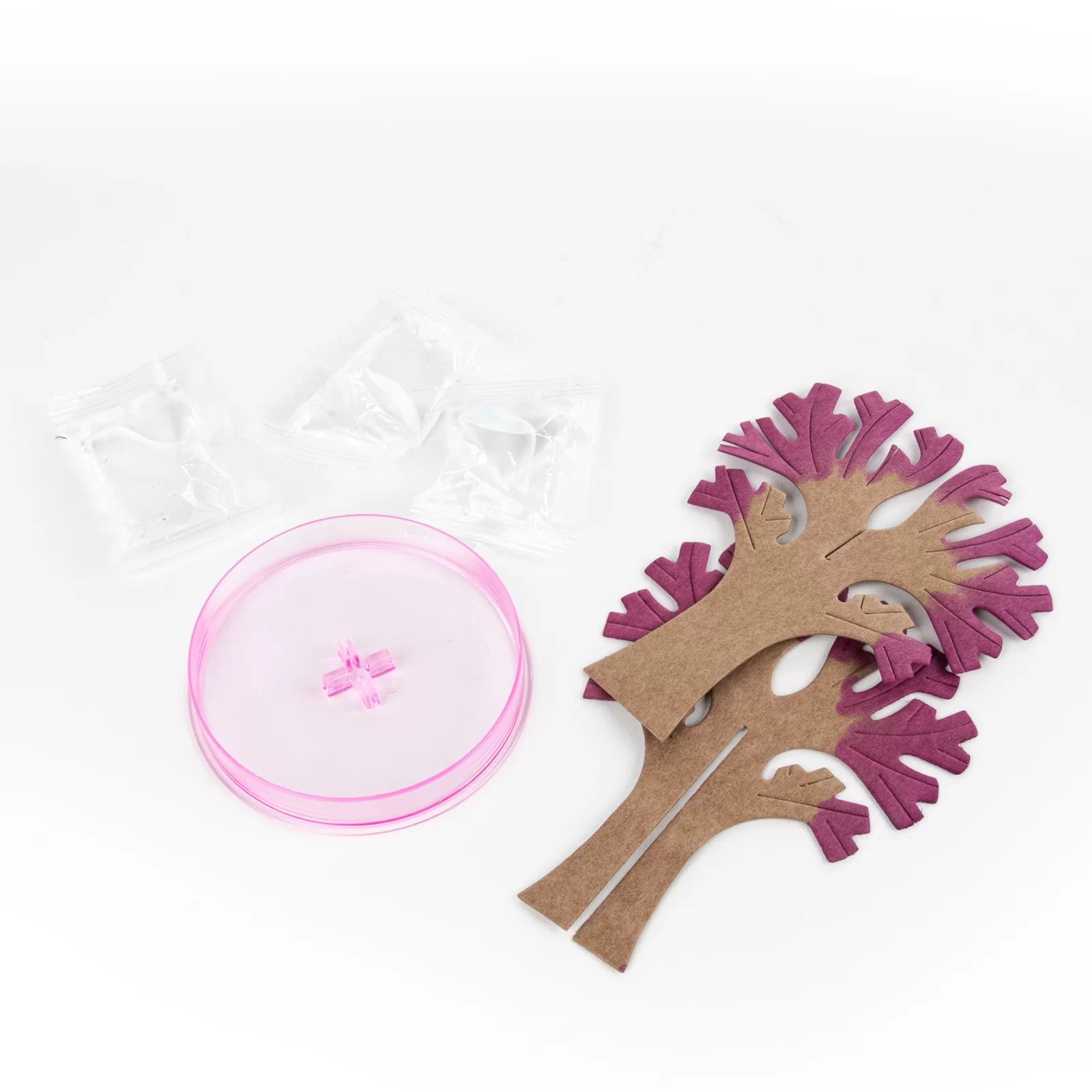 ✨ După asamblare, tot ce trebuie să faceți este să turnați apa inclusă pentru a porni procesul de înflorire magică. În doar o oră, ramurile vor fi acoperite cu cristale colorate ce seamănă cu flori delicate, creând o experiență vizuală uimitoare.