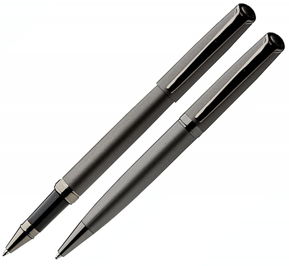 Ambele instrumente fac parte din gama Wellington a brandului Aurora și au o nuanță de Antracit (gri închis/negru). Setul este livrat într-o cutie specială de cadou.