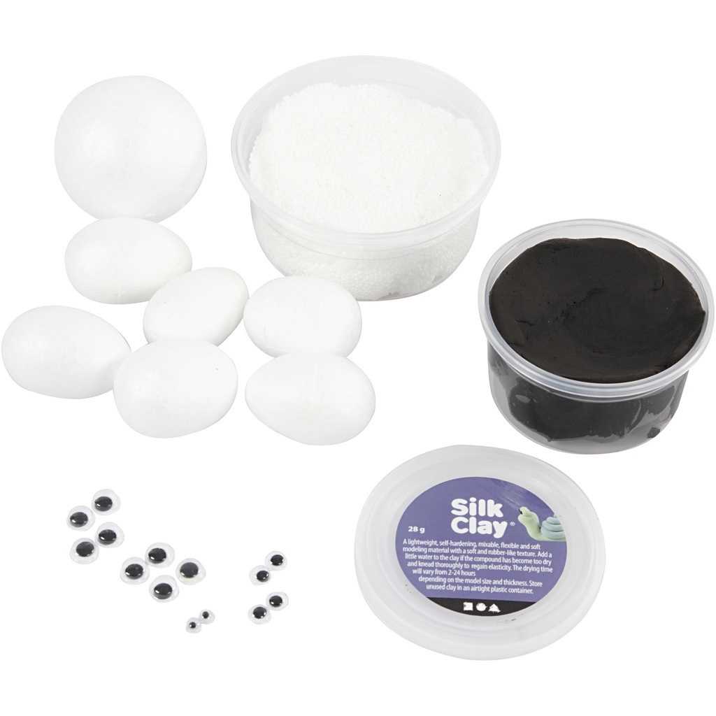 Contents: Silk Clay and Foam Clay, styrofoam balls and eggs as well as rolling eyes in three sizes .