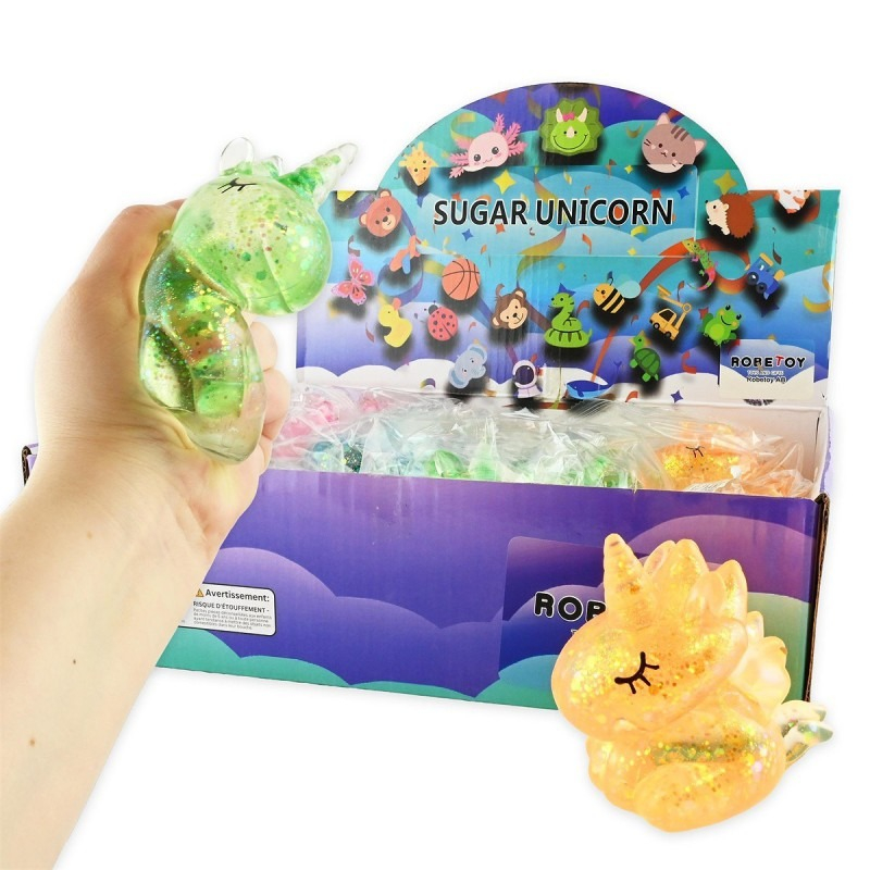 Adaugă un strop de magie și relaxare zilei tale cu această figurină squishy adorabilă! Figurina Sugar Unicorn Glitter este perfectă pentru a-ți destinde mâinile, oferind o senzație plăcută și un design încântător.