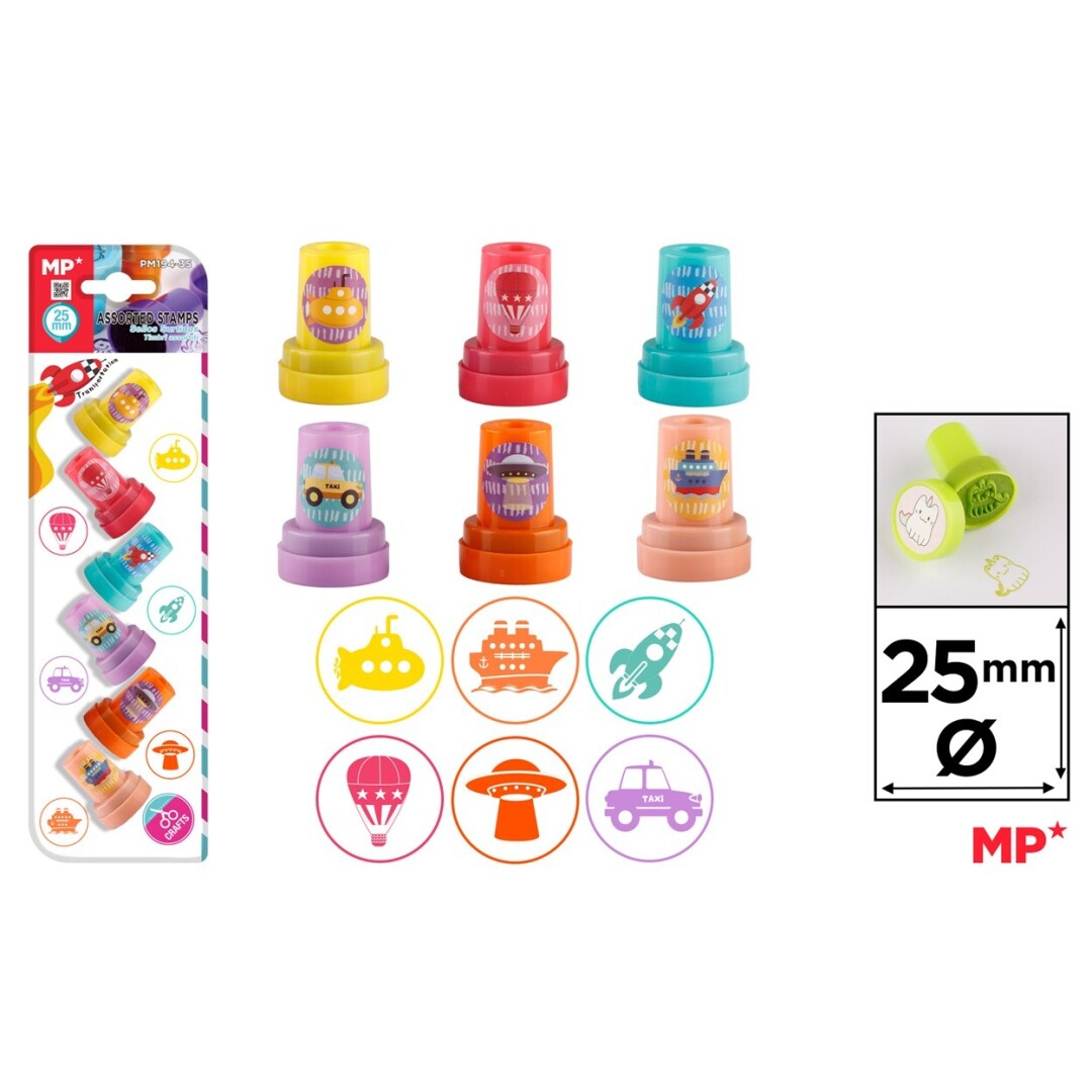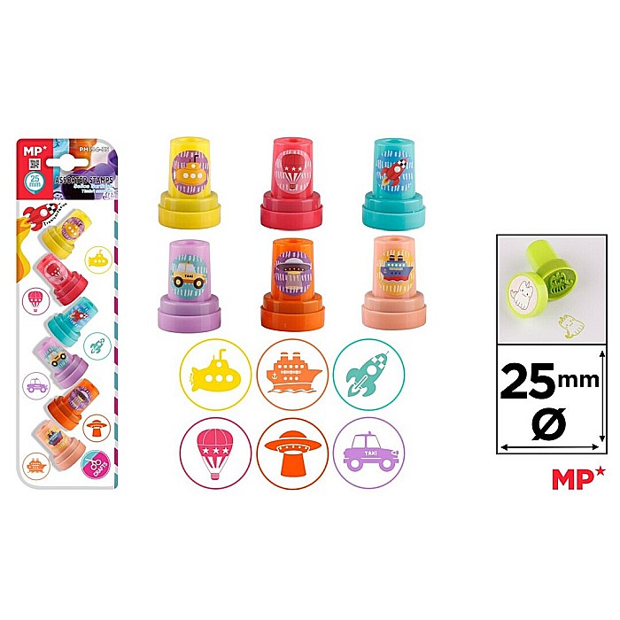 Ștampile pentru copii cu mâner de plastic care se adaptează perfect mâinilor mici ale celor mici. În culori și modele asortate. Vin pre-cernelate. Sunt ideale pentru a-i recompensa pe cei mici, a decora joburi, meșteșuguri sau pur și simplu ștampilarea și colorarea lor. Ei dezvoltă creativitatea și imaginația cu modelele și culorile lor distractive! 25mm O. Blister de 6 unități asortate. Modalitati de transport.