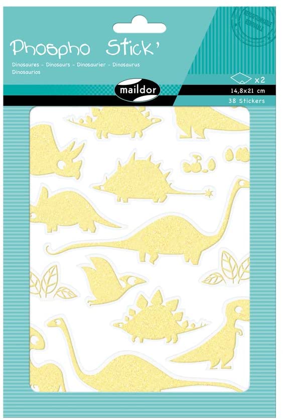 Maildor AE105O - O pungă de autocolante Phospho'Stick 2 coli 14,8x21 cm, Dinozaur (38 autocolante)