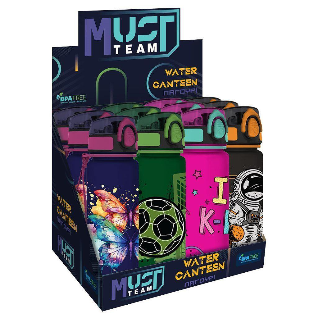 Rămâi hidratat și plin de energie cu stil, folosind sticla de apă Must Team! Această sticlă practică și atractivă, cu un design colorat și motivant, este accesoriul ideal pentru școală, sala de sport sau plimbările zilnice.
