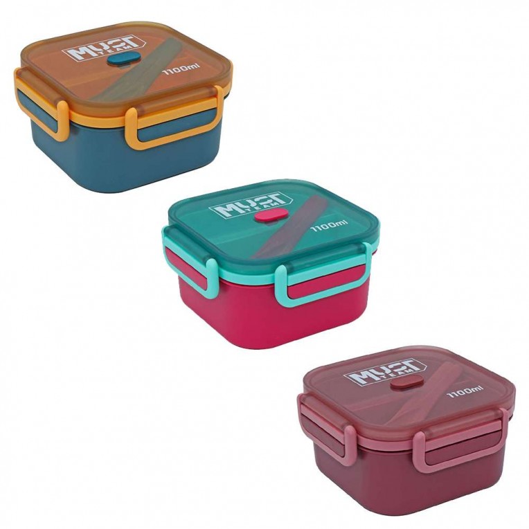 Etichete: Dimensiuni, Culori variate, 3 culori, Recipient alimente, Plastic PP, Furculiță, Lingură, Marca Must, Capacitate 1100 ml, BRA Free, Calitate alimentară 5 PP