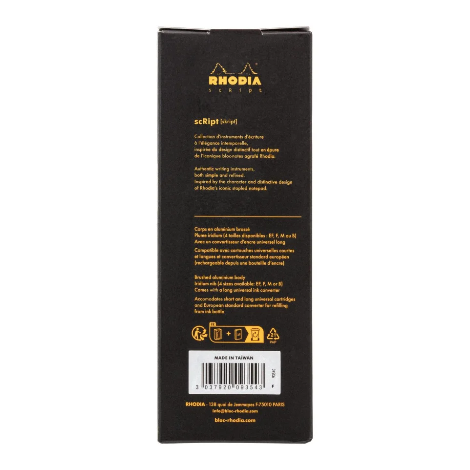Datorită construcției metalice robuste și a sistemului de alimentare versatil, Rhodia Script este un partener de încredere pentru orice profesionist sau pasionat de papetărie.
