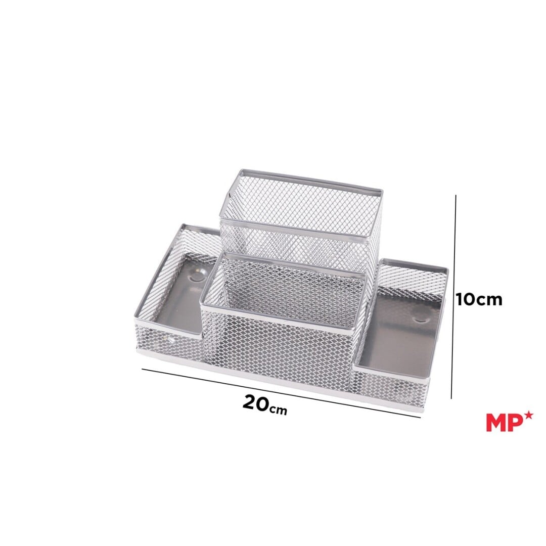 Organizator desktop pentru a avea toate accesoriile de birou la indemana si in ordine. Fabricat din plasă metalică argintie. Foarte robust.