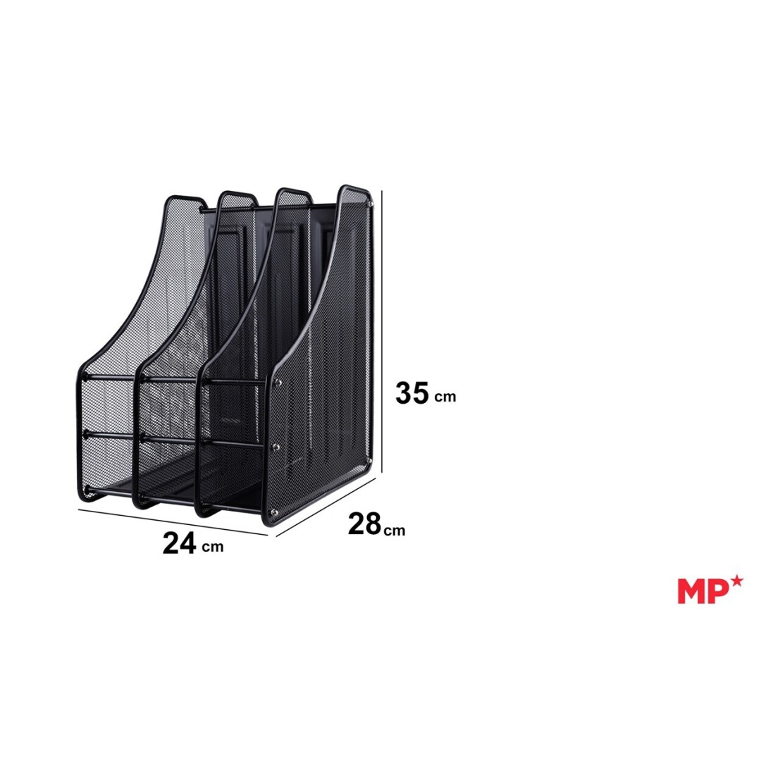 Etichete: organizare documente, 3 compartimente, Design tip plasă, Dimensiuni: 24 x 35 x 28 cm, Suport dosare birou, suport birou, suport dosare vertical, suport documente, negru, suport dosare metalic