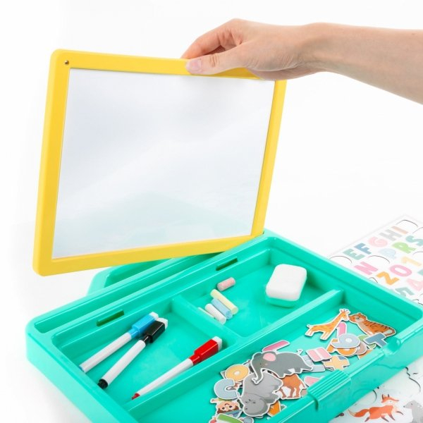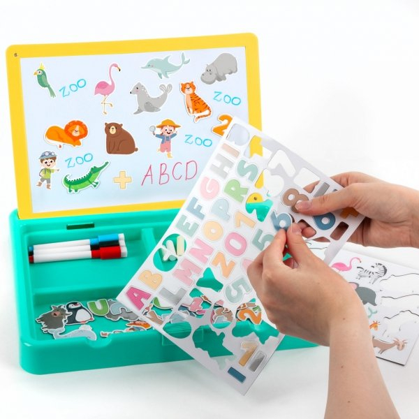 Set portabil și versatil 5 în 1 ZOO KIDEA PZT5W1ZKA este o tablă magnetică educativă perfectă pentru dezvoltarea memoriei, imaginației, concentrării și abilităților manuale și artistice ale copiilor, fiind ușor de transportat datorită mânerului comod.
